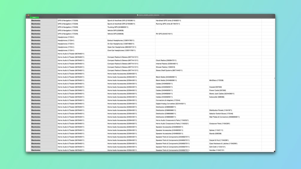 Get the most comprehensive list of 34,000 Amazon U.S. product categories (browse nodes) in Excel, CSV, and TXT formats. Ideal for sellers, developers, and researchers.